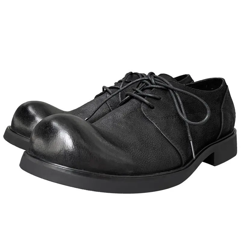 2025 Men’s Upturned Genuine Retro Handmade Old Trendy Breathable Soft Sole Big Head Leather Single Shoes