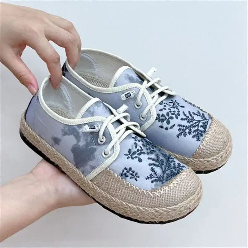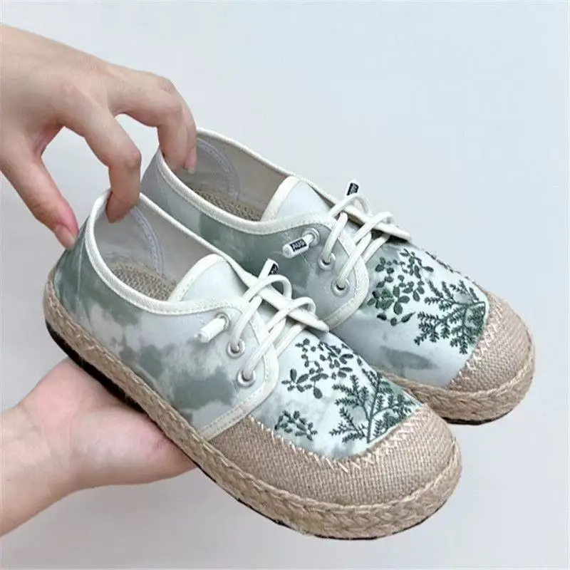 Careaymade-Hot Flats Women Shoes Embroider Retro Lace-up Round Toe Cotton Linen New Handmade Concise Comfortable Ladies Shoes