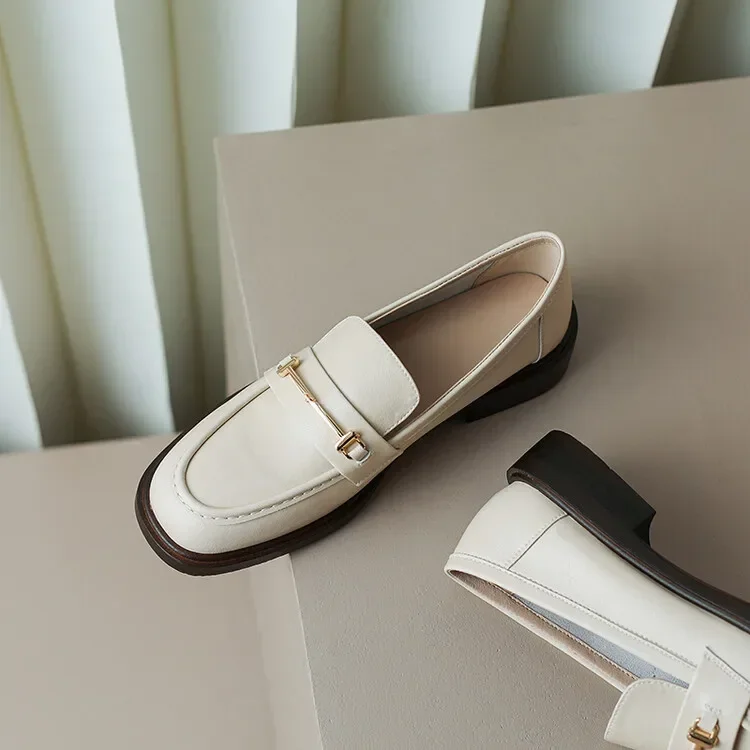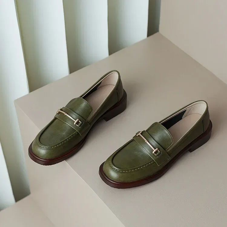 Ochanmeb Natural Leather Loafers Flat Shoes Women Brand Metal Chain Round Toe Slip-ons Flats Ladies Casual Creepers Moccasins 40