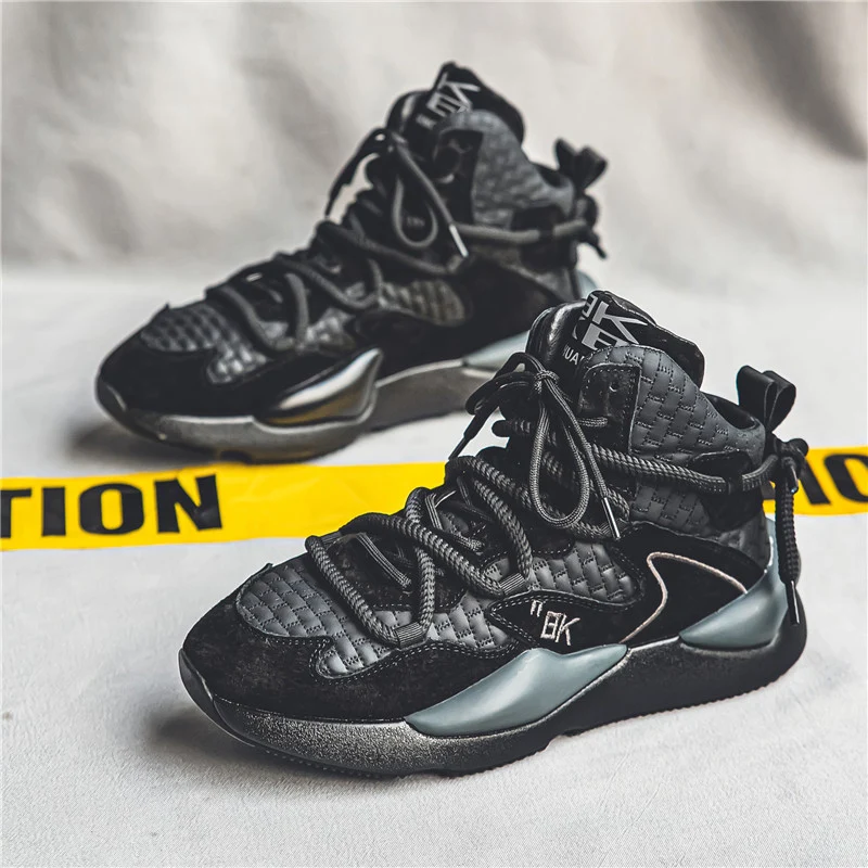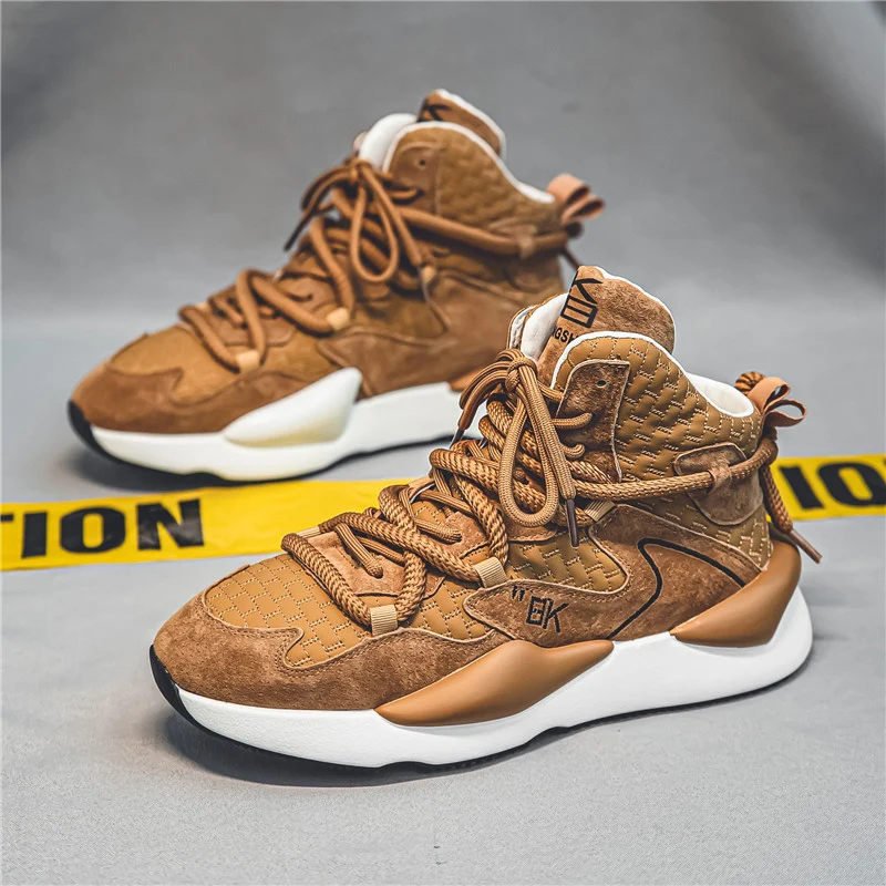 High Top Chunky Sneakers Mens Designer Sports Shoes Fashion Casual Microfiber Leather/Mesh Upper Height Increased Platform Shoes