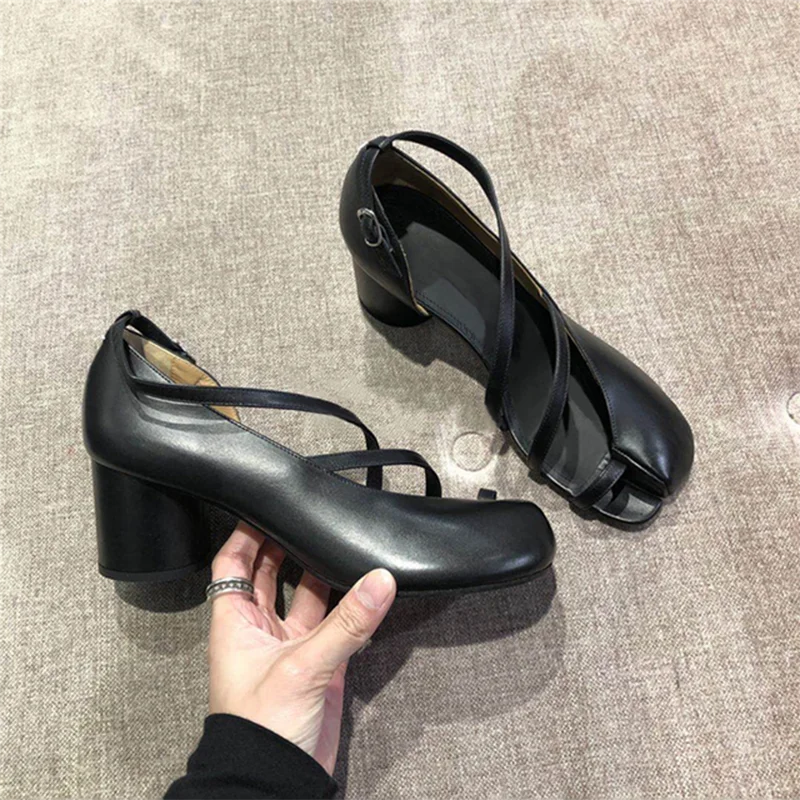 Summer Exposed Toe Ankle Strap Tabi Sandals Women Split Toe High Heels Women Round Heel Tabi Shoes Women Party Zapatos Mujer